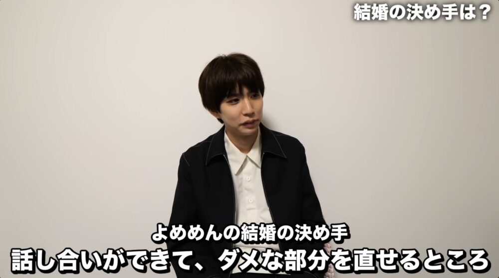 交際期間は長くないものの、知り合ってからの時間が長く、恋愛関係になる前にお互いの考え方や弱い部分を共有できたことで、信頼関係を築けたことも大きかったと語っています。