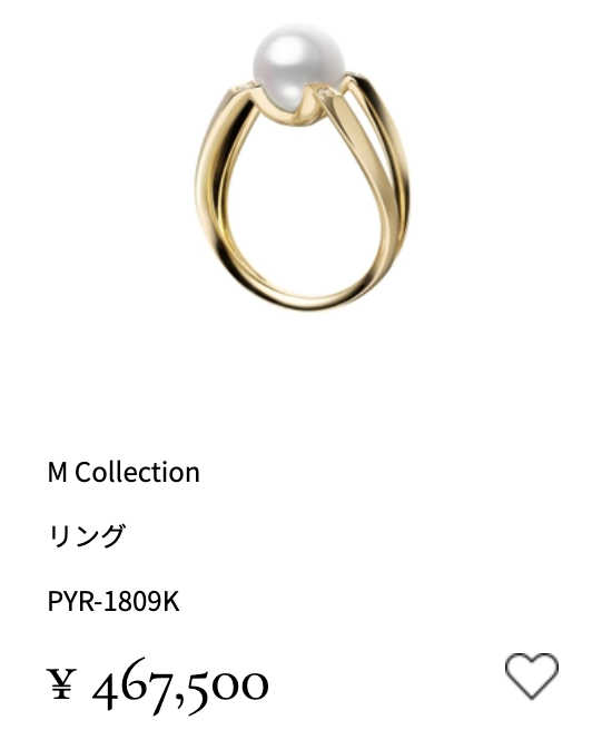 - 婚約指輪:MIKIMOTO(ミキモト)のパール系で約30万〜70万円台